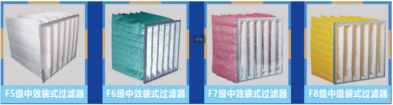 3、捕集1~5um以上的顆粒灰塵及各種懸浮物;風(fēng)量大;阻力小;容塵量大